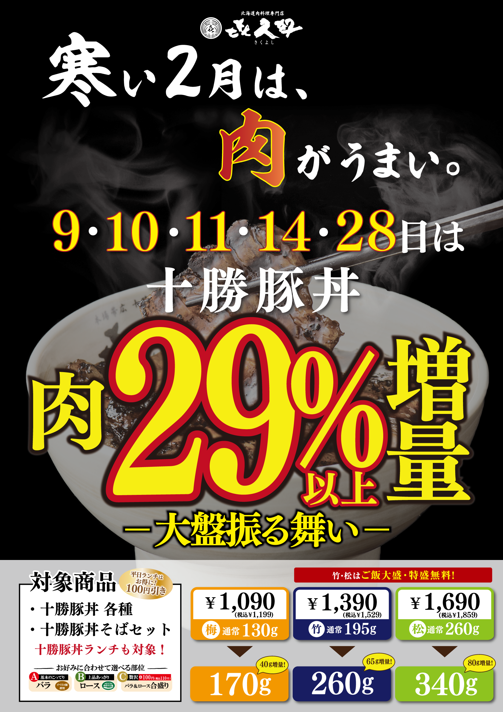2月はなんと5日も開催!豚丼肉29%増量「肉の日キャンペーン」